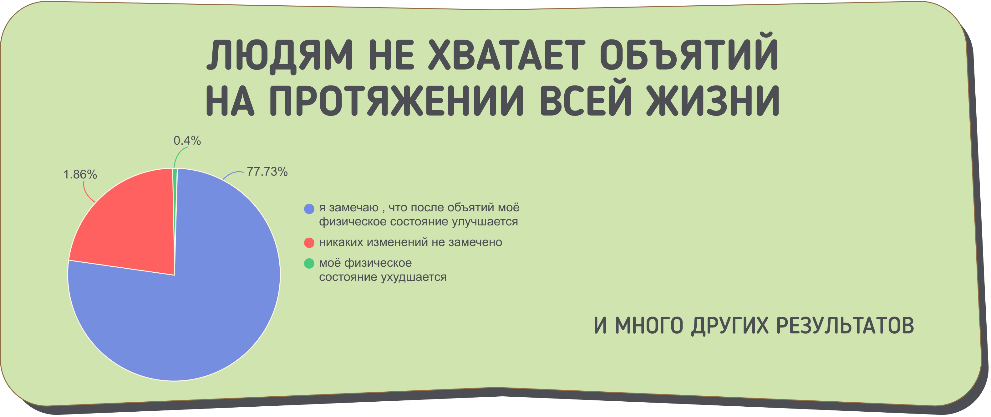 Так «гормон счастья» окситоцин, высвобождаемый при объятиях, снижает выработку кортизола — гормона стресса. Во время объятий также активируется работа нейромедиаторов — серотонина и дофамина, связанная с чувством комфорта и расслабленности